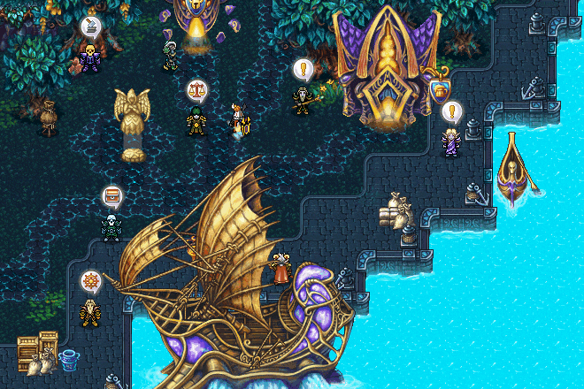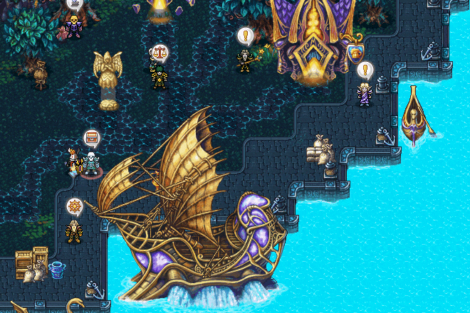 - Longo Impasse: Aumenta o poder físico e mágico do personagem em 0,6% unidades a cada 5 segundos enquanto o personagem está em batalha contra monstros no Cemitério de Navios (número máximo de buffs: 25 - 15%)