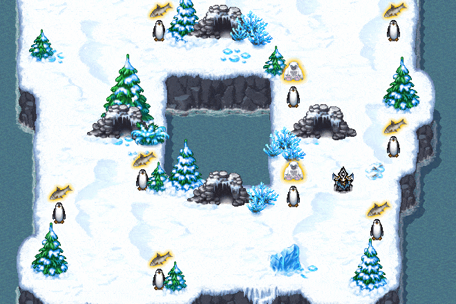 Mais recentemente, não houve como escapar dos pinguins na Fronteira da Neve! E então, alguns dias atrás, essas aves foram reconhecidas como uma espécie em extinção! Barba Branca pede a todos os que não são indiferentes ao destino de lindos pássaros que apliquem todas as suas forças para salvar os filhotes! Qualquer pinguim da Fronteira da Neve deve ser aquecido, alimentado e feliz, dependendo de suas necessidades! Para cada pinguim que você cuidar, Barba Branca pagará muito bem em Símbolos!